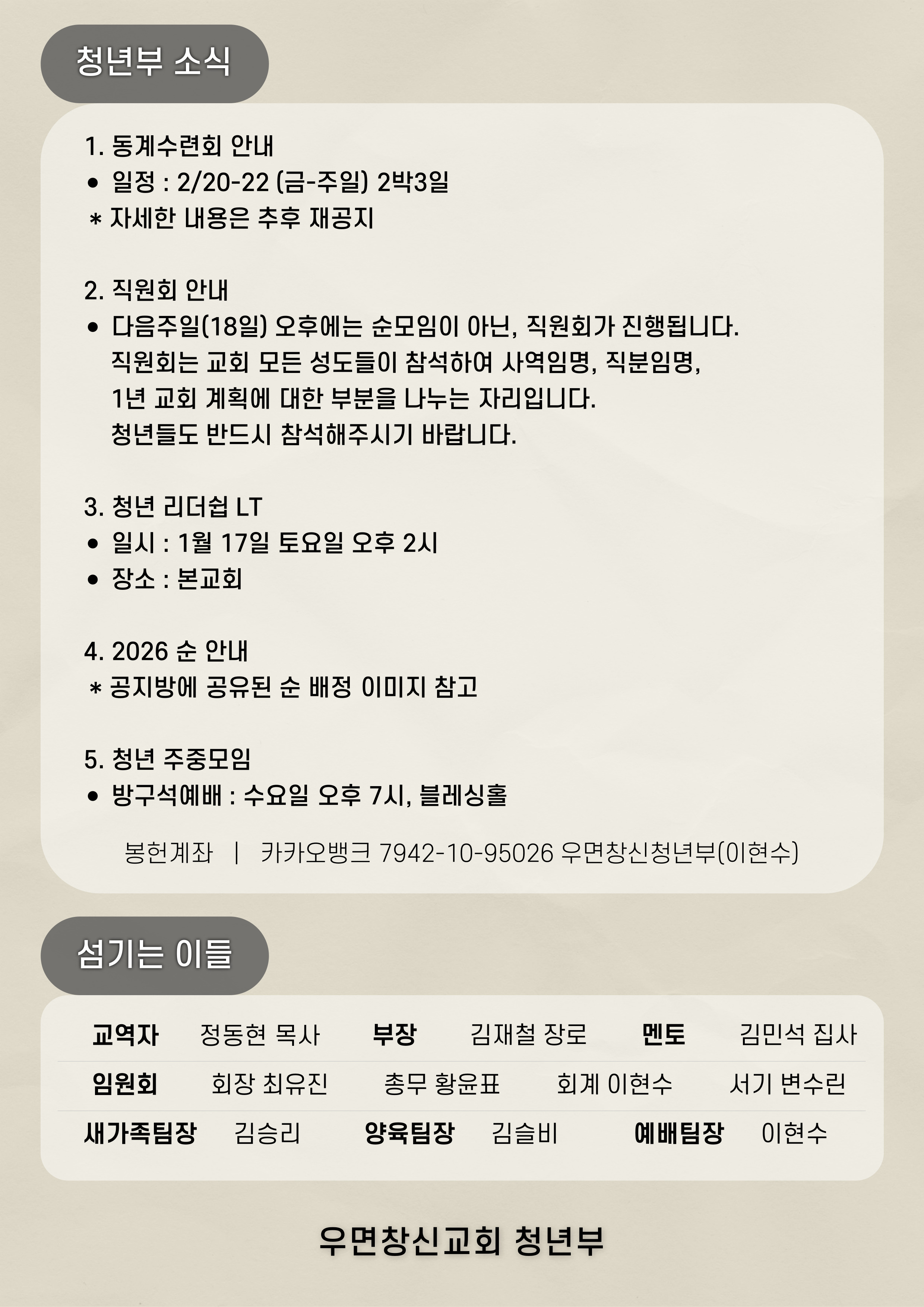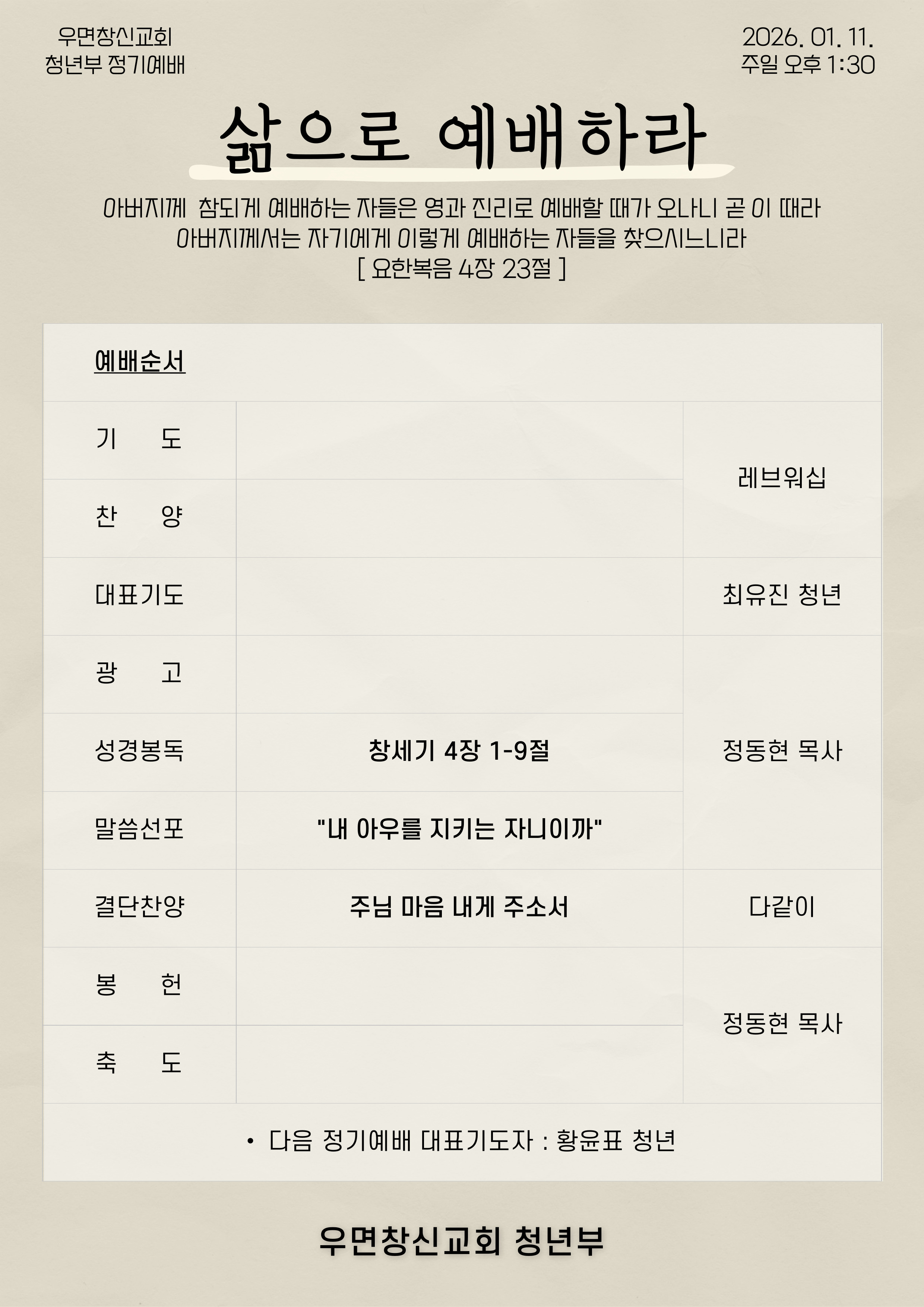 2026 1월 2주차 청년정기예배 주보