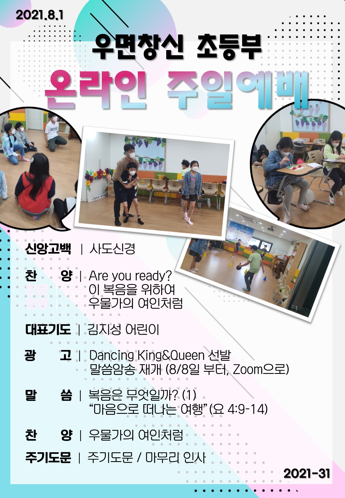 8월 1일 온라인 어린이 예배 주보