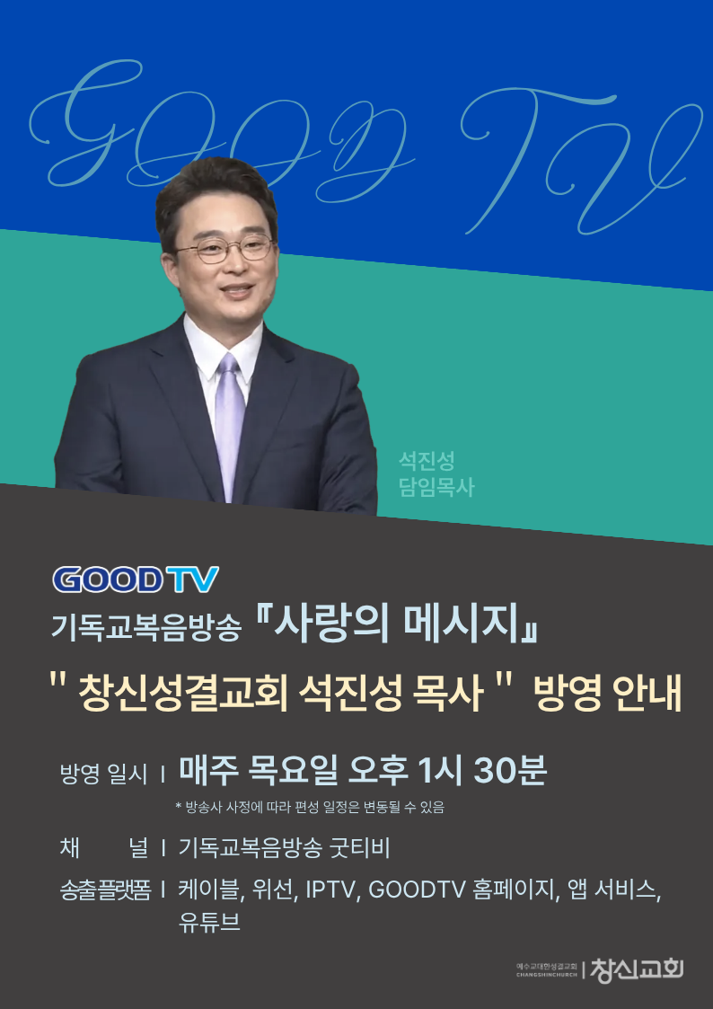 GOODTV 기독교복음방송 "사랑의 메시지-창신성결교회 석진성 목사" 방영